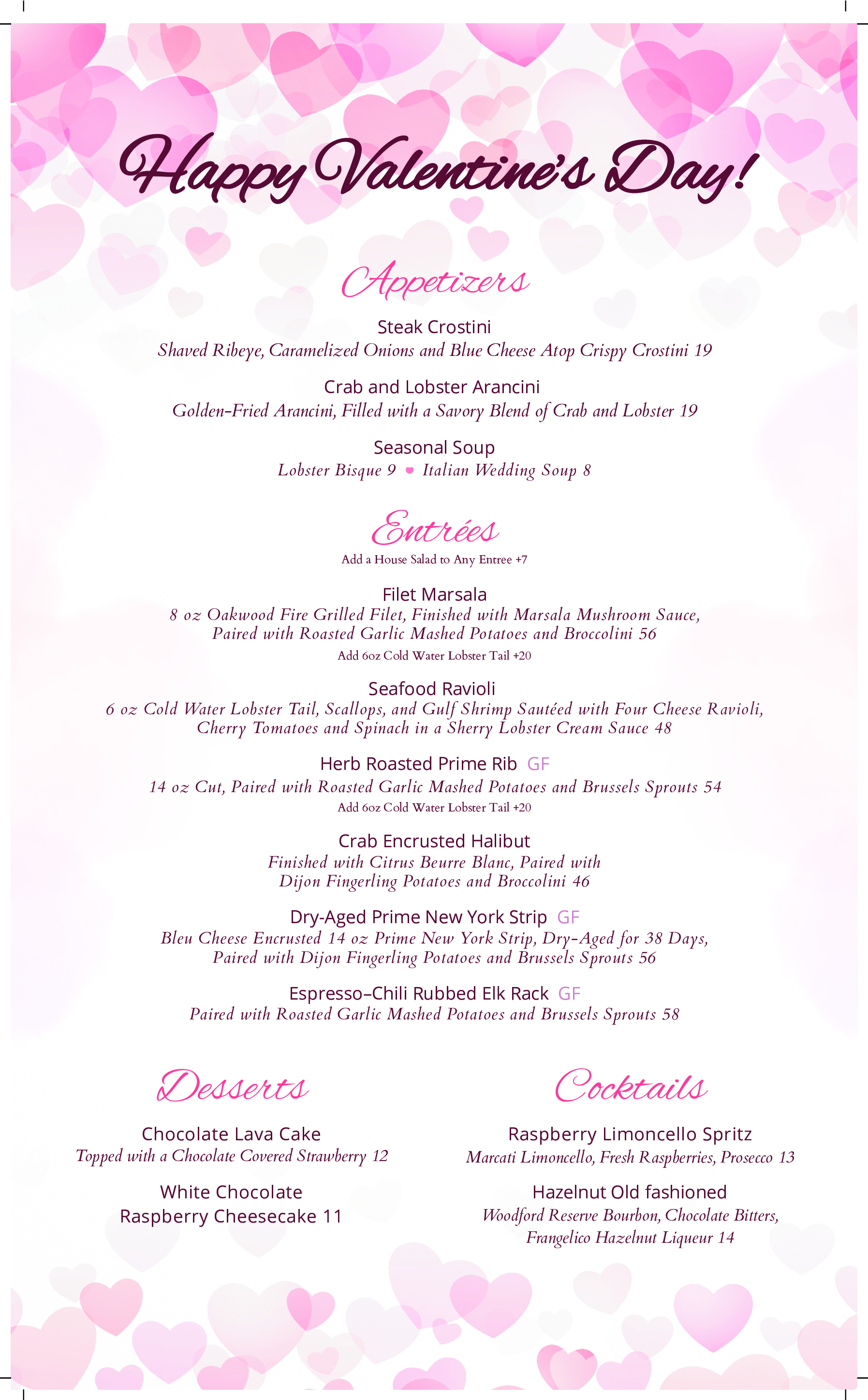 Valentine's Day Menu